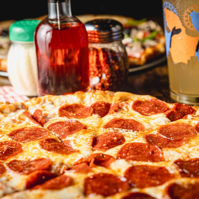 Pepperoni, mozzarella, parmesan, tomato sauce.